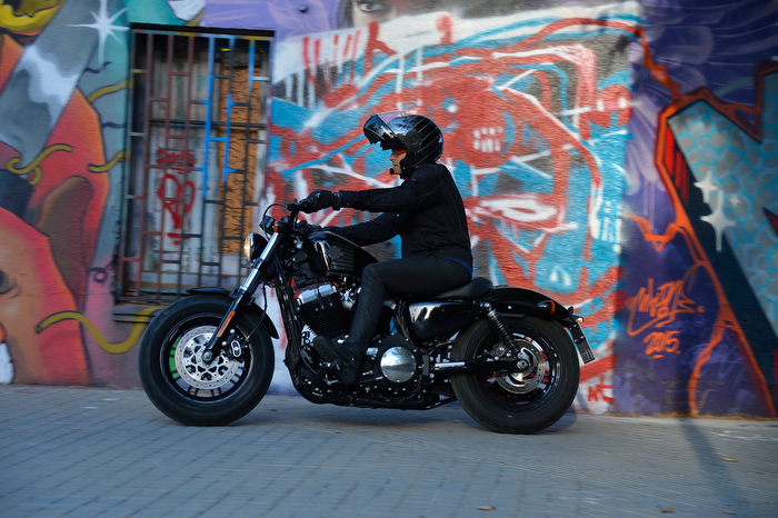 En Forty-Eight, además de la suspensión ajustable, que da más confort, sus llantas gruesas y