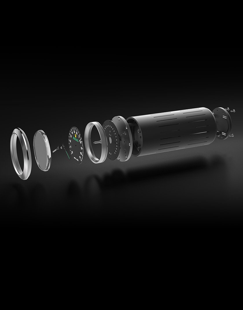 Con ello un instrumento de cronógrafo y velocímetro analógicos han sido elaborados a fin de cumplir con los estándares de precisión y fiabilidad de Rolex, por lo que presentan carátulas analógicas completamente visibles desde la cabina del bólido supersónico piloteado por Andy Green.