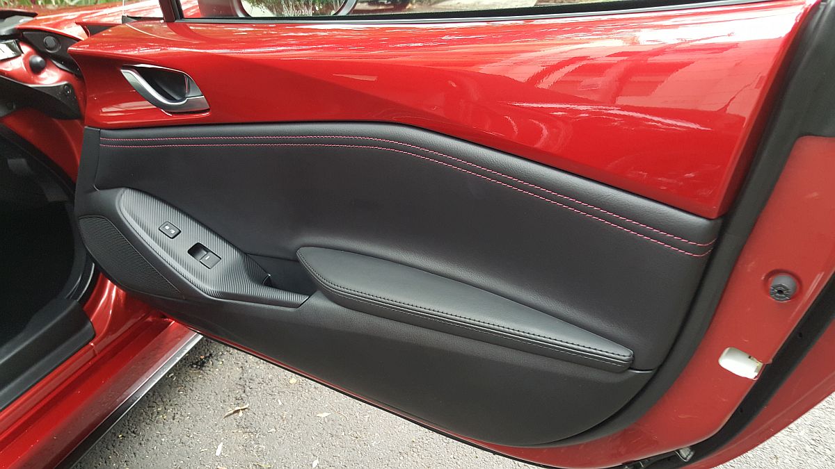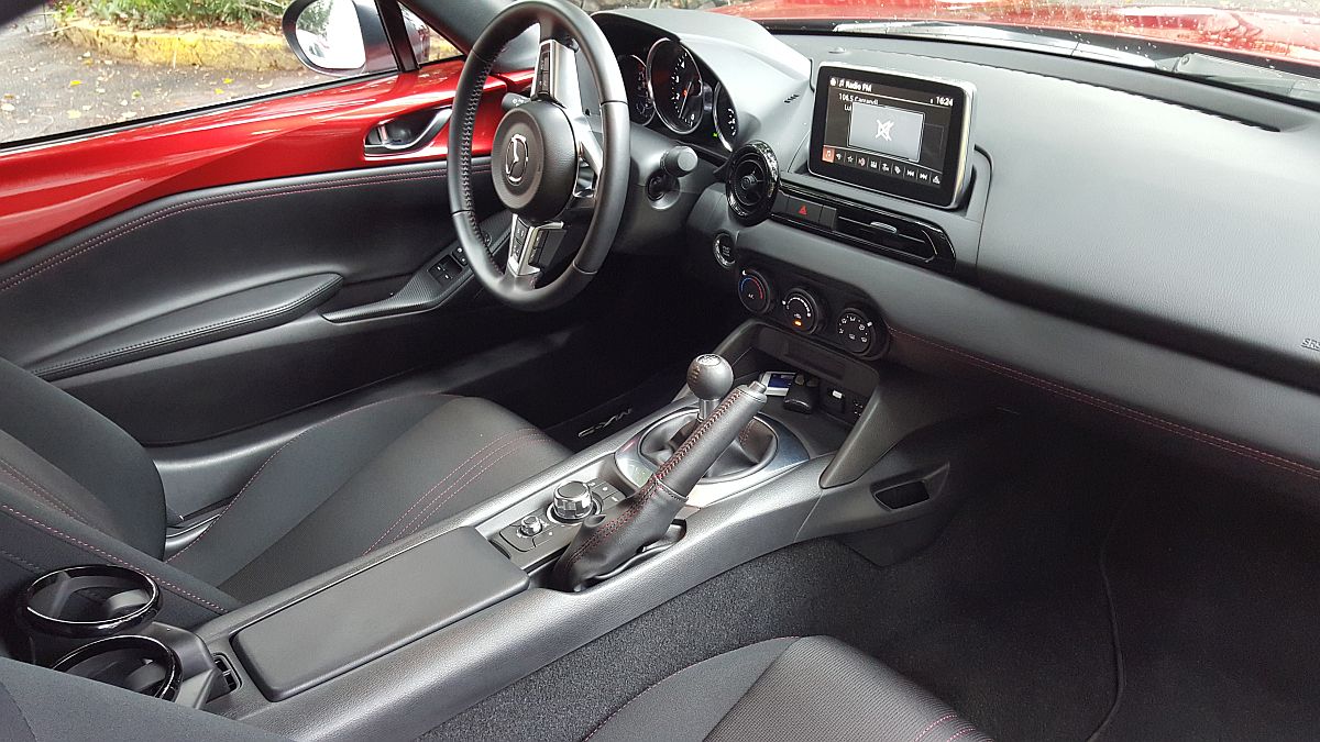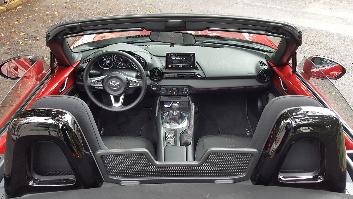 Algo importante en los convertibles es la capota. En este nuevo MX5, la insonorización de la cabina es muy buena, no se perciben rechinidos de ningún tipo y para quitar o poner la capota, basta con hacer literalmente dos movimientos simples, sin necesidad de bajarse y moviendo cosas muy ligeras. Un gran acierto y que no todos los de ‘techo de lona’ tienen, es un vidrio trasero con desempañante. Esto puede ser la gran diferencia para ver al de atrás o no verlo.