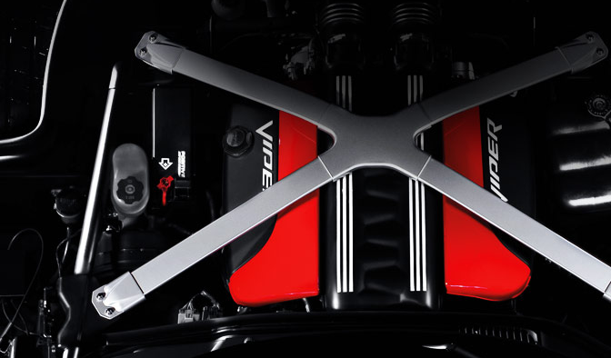 Motorización actual: el SRT® Viper está dotado de un V-10 de 8.4 litros que produce 640 caballos de aspiración natural, acoplados a una transmisión manual de 6 relaciones con suspensión independiente en las cuatro ruedas.