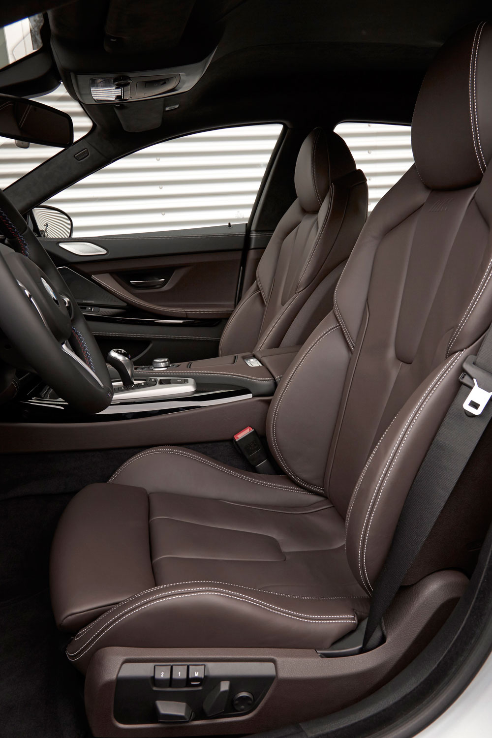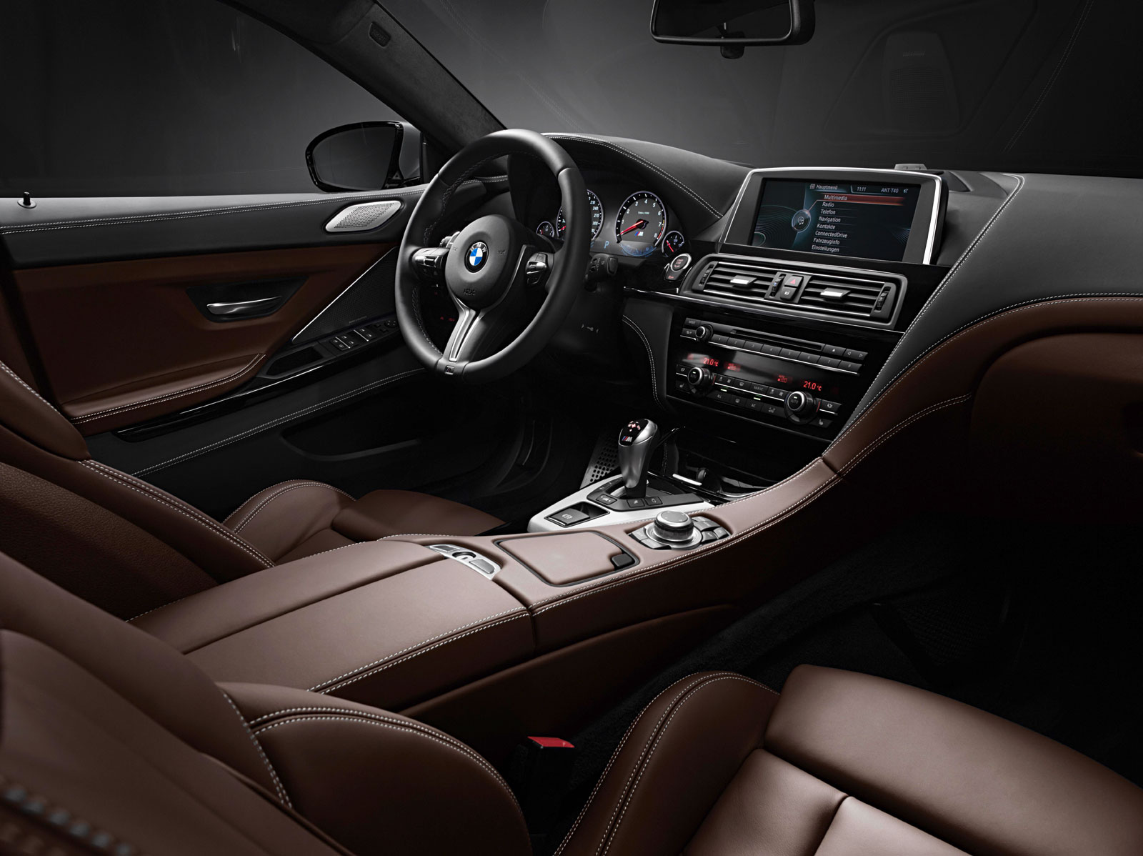 Esto se confirma al interior del auto, de entrada la inscripción M6 en las molduras del piso de las puertas se iluminan para dar la bienvenida a una cabina, cuyo toldo curvo compromete la amplitud de las dos plazas traseras, no así a las dos plazas delanteras cuya posición de manejo relativamente más baja, refleja el espíritu más personal y entusiasta del auto; Los asientos delanteros multi funcionales son realmente cómodos, cuentan con soporte en curvas, calefacción y numerosos ajustes; materiales de alta calidad como son alcántara, piel e incrustaciones de fibra de carbono se combinan armónicamente en un efecto bicolor, consiguiendo un ambiente de gran lujo y deportividad, en donde destaca el guarnecido interior del techo dándole un toque de mayor sofisticación.