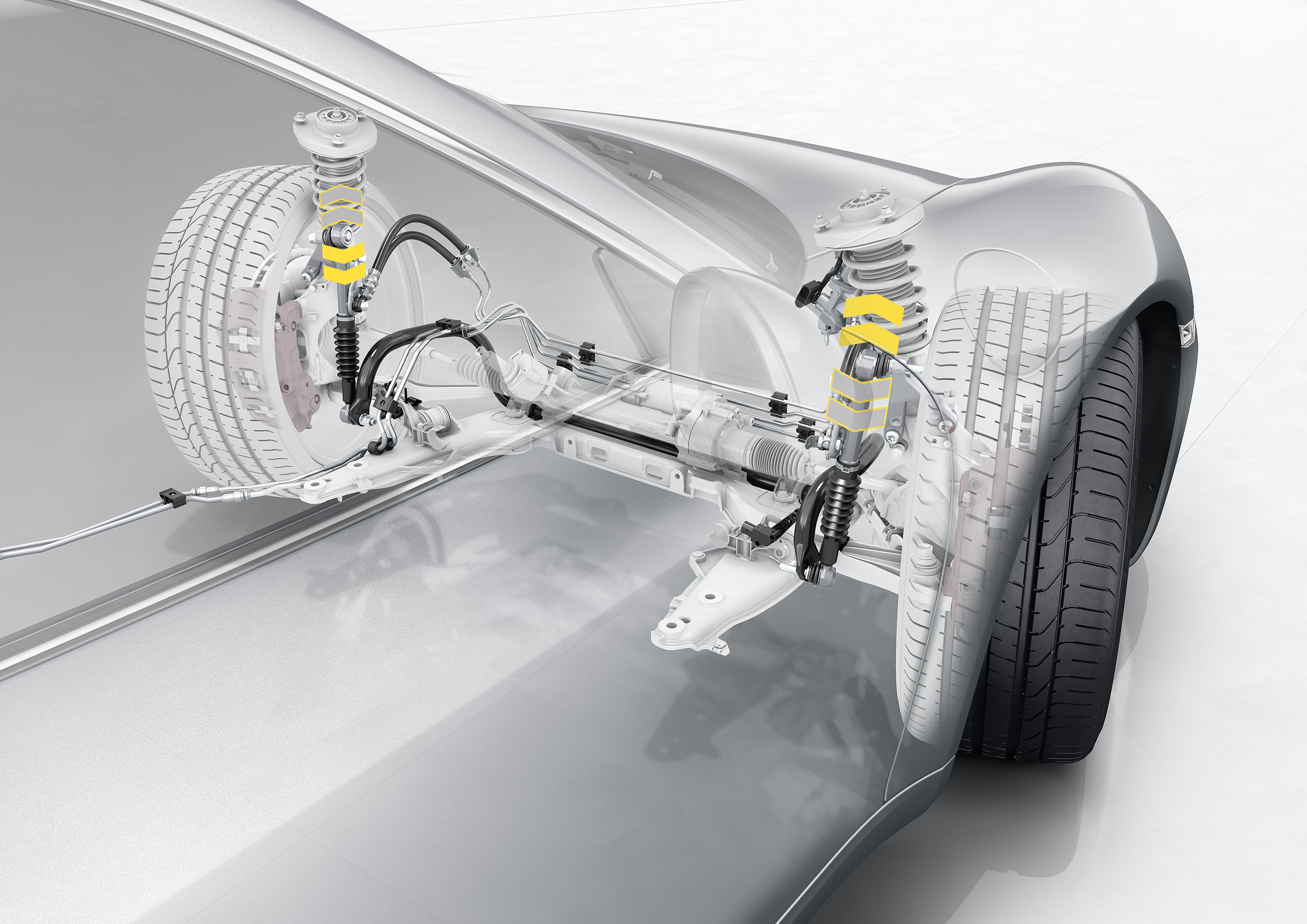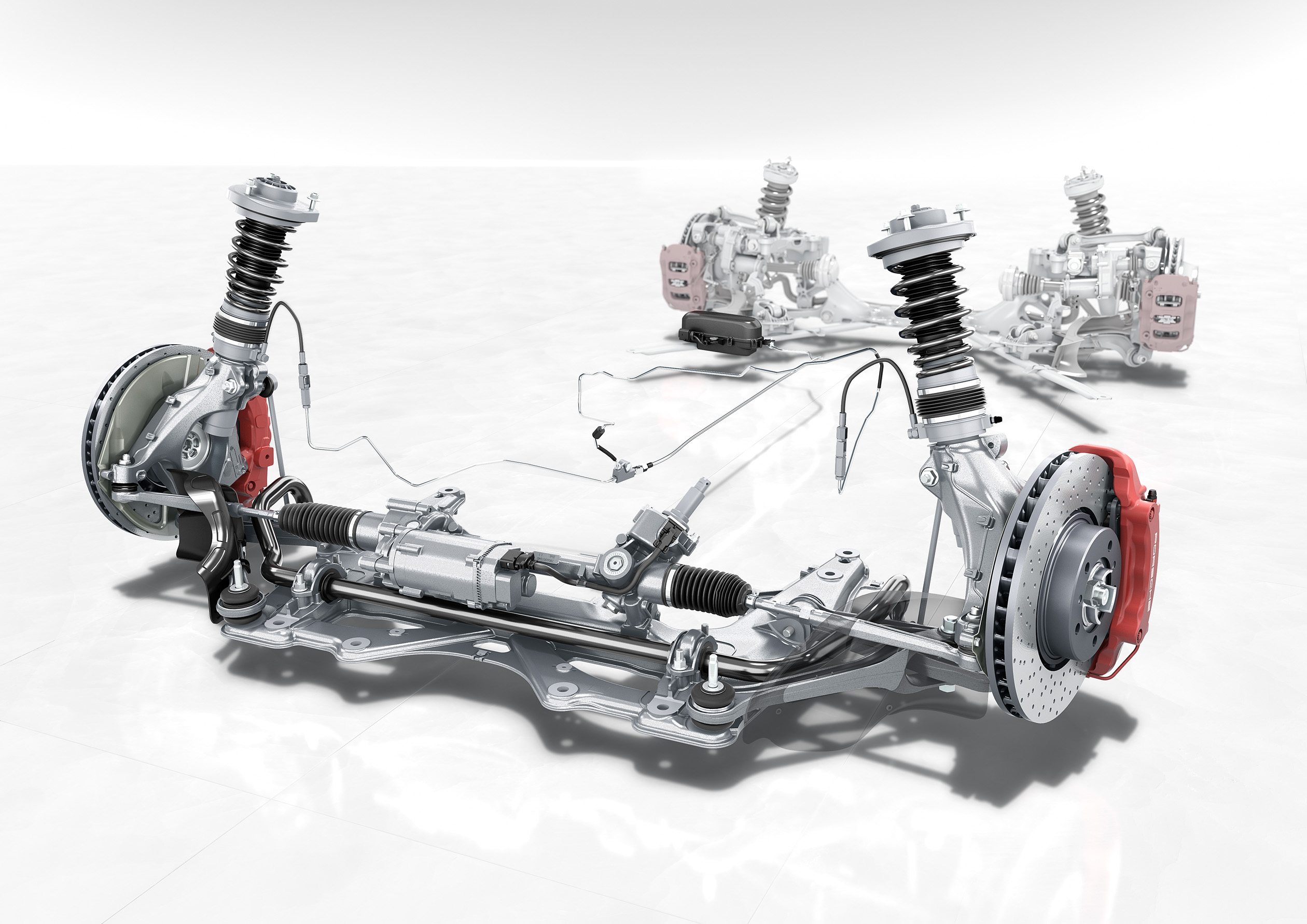 El chasis ha sido modificado y ahora es 10mm más bajo. El sistema PASM (Porsche Active Stability Management) ahora es de serie y ofrece más confort y más deportividad sin contraponerse. Opcionalmente podemos adquirir el PDCC (Porsche Dynamic Chassis Control) para una prevenir el rolling de la carrocería en curvas muy cerradas. A partir del Carrera S, se puede acceder a tener el eje trasero con dirección activa (Rear Axle Steering) para mejorar la experiencia en curvas a alta velocidad y mejorar el radio de giro en bajas velocidades. Este sistema proviene directamente del 911 Turbo y del GT3 RS, en donde ha tenido mucho éxito ha sido de gran diferencia.
