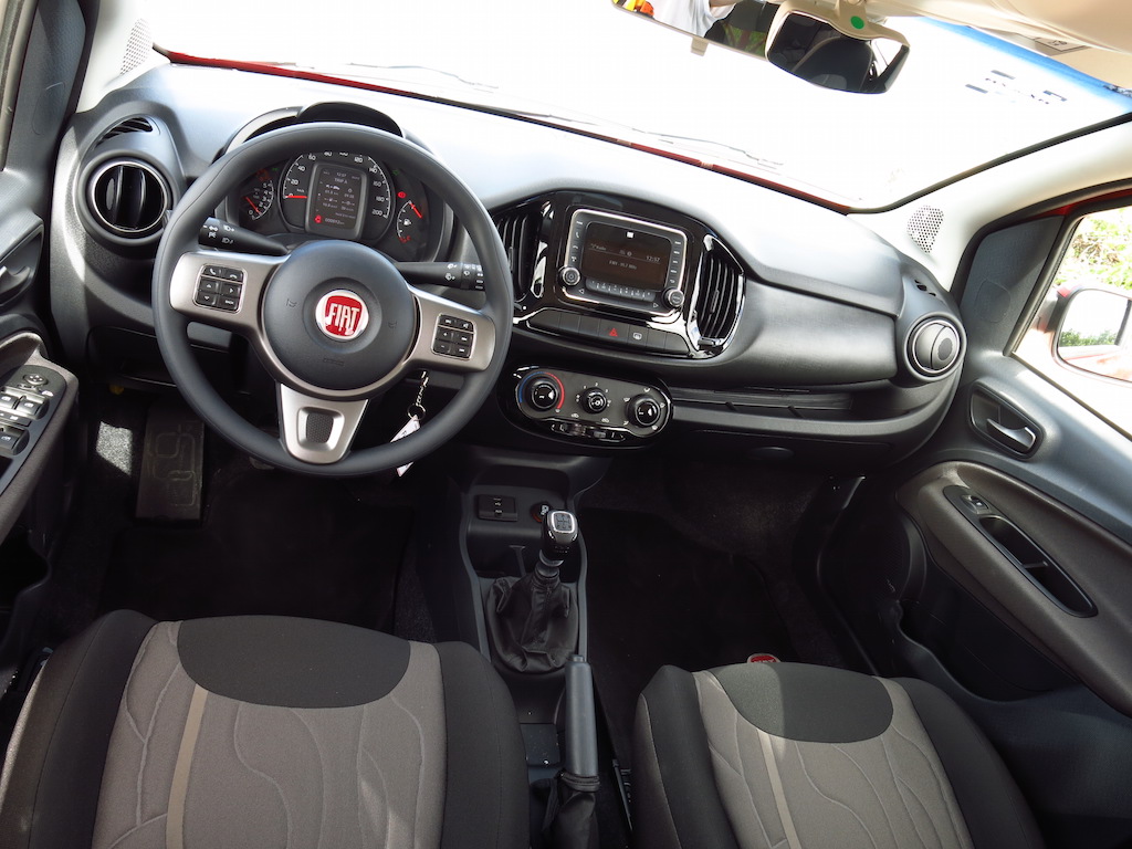 Al interior el habitáculo también muestra una nueva configuración no nada mas en la disposición y nivel de equipamiento, sino en la calidad de ensambles y materiales utilizados que incluyen nuevas tapicerías y plásticos de tacto suave en algunas partes del tablero. En cuanto a equipamiento se refiere, el nuevo Fiat Uno 2015 se beneficia de un nuevo cluster de instrumentos con computadora de viaje incluida, un volante de nuevo diseño con controles de audio y ajuste de altura, manos libres, aire acondicionado, sistema de audio Fiat Premium con pantalla LCD, conexión auxiliar, puerto USB, espejos y cristales eléctricos, asientos con ajuste de altura manual, diversos porta objetos, banca trasera abatible 60/40 y un espacio de carga que se puede ampliar hasta los 690 litros de capacidad. Cuenta ademas con dos bolsas de aire como equipo de serie desde la versión de entrada.