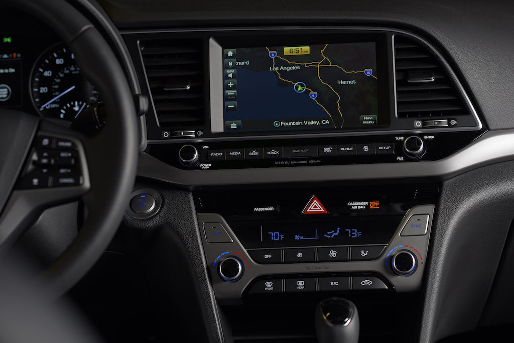 En el interior, Elantra continúa para describir un diseño orientado al conductor moderno que está optimizado para un control intuitivo, mejorada habitabilidad interior, materiales de alta calidad y características de la tecnología de primera calidad. El diseño interior contemporáneo integra materiales suaves al tacto de primera calidad en los puntos de contacto clave y detalles de alta tecnología para crear un ambiente acogedor y confortable interior para todos los pasajeros.