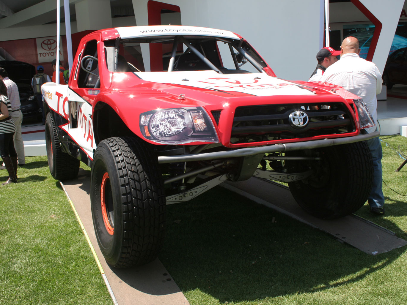El stand de Toyota además de presentar toda su gama y presumir su Prius como el híbrido más accesible de México también dio espacio para su división deportiva con un vehículo tipo Nascar y una pick up de la Baja 1000