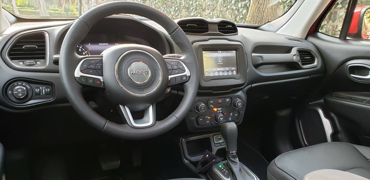Los asientos están forrados en piel e incorpora sistema de entrada al vehículo Keyless Enter N’ Go usando llave del auto tipo sensor y encendido por medio de un botón. Ahora cuenta con una pantalla táctil central TFT de 7 pulgadas en donde se despliega la cámara de reversa y ahí mismo, se interactúa con el sistema Uconnect y Apple Carplay + Android Auto que resulta verdaderamente fácil de conectar.