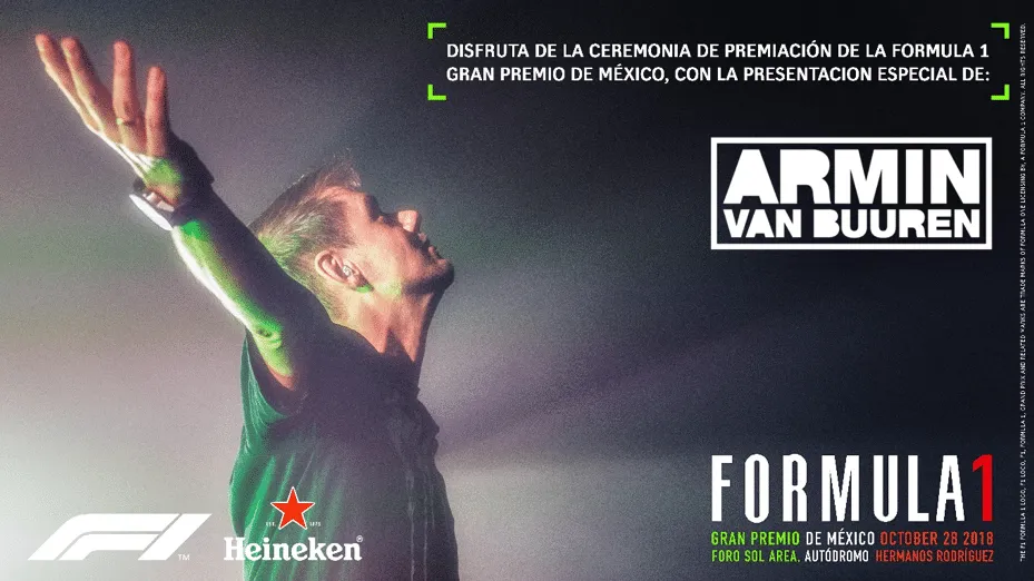 Tras hacer historia en la edición pasada al convertirse en el primer Gran Premio que contaba con un DJ en el podio, ahora por segundo año consecutivo los organizadores de la mejor F1ESTA del mundo se preparan para hacer de su cuarta edición un evento inolvidable, ya que el DJ holandés Armin Van Buuren, será el encargado de elevar los beats en el Autódromo Hermanos Rodríguez.