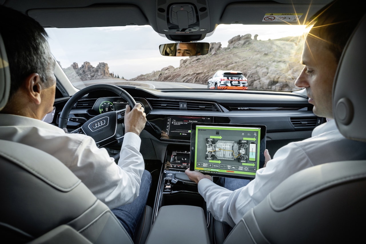 Con sus 4.302 metros, el pico Pikes Peak se alza imponente al sur de las Montañas Rocosas. En el mismo escenario en el que Walter Röhrl ganó la prueba de montaña más famosa del mundo al volante del Audi Sport quattro S1 en 1987, el Audi e-tron prototype causa ahora sensación con su sistema variable de recuperación de energía, el más eficiente de entre todos sus rivales. En los 31 kilómetros de descenso, el SUV eléctrico es capaz de devolver a la batería una cantidad de energía tal, que sería posible volver a recorrer la misma distancia de nuevo. La diferencia de altitud, de unos 1.900 metros, proporciona las condiciones ideales para ello. El Audi e-tron prototype recupera energía con un par de hasta 300 Nm y 220 kW de potencia eléctrica, más del 70 por ciento de su potencia de sistema. Hasta el momento, ningún otro modelo de producción ha alcanzado una cifra semejante.