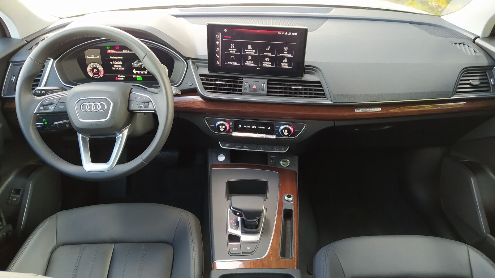 Al interior, destaca la tecnología, comodidad y el alto nivel de acabados. Una atmósfera premium que se aprecia al momento de abrir la puerta e ingresar al habitáculo. Destaca Audi Virtual Cockpit, esta pantalla que brinda información del vehículo.