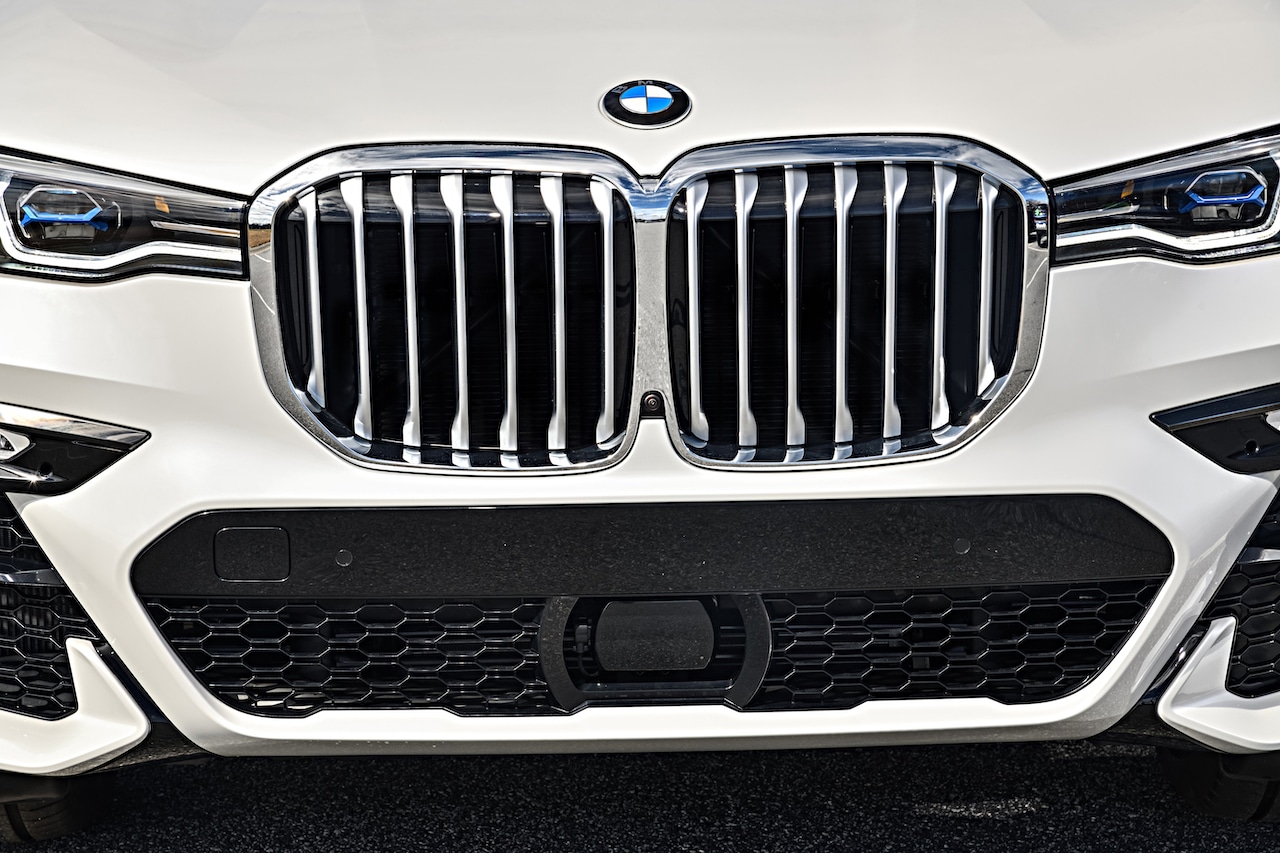 La prominente parte delantera, con su excepcional rejilla de riñón de BMW, le da al auto un innegable sentido de presencia. El BMW X7 viene de serie con faros LED, mientras que el BMW Laserlight opcional tiene un alcance de haz de luz de hasta 600 metros y se puede identificar fácilmente por los elementos en forma de x azules dentro de los faros. Las características definitorias del automóvil cuando se ven desde un lado son sus ventanas grandes, la distancia al suelo elevada y el techo largo. Las líneas horizontales, las luces LED delgadas y el portón trasero dividido en dos secciones enfatizan el estilo contemporáneo de la parte trasera.