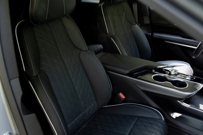 La cabina ofrece un ambiente refinado y tecnológico: pantalla LED de 33”, sistema de audio AKG Studio de 23 bocinas con Dolby Atmos, techo panorámico de cristal fijo, y un Head-Up Display de realidad aumentada. El volante exclusivo con botón V-Mode y palanca de aluminio para Regen On-Demand refuerzan su carácter deportivo.