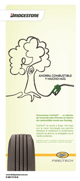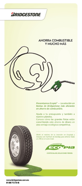 Bridgestone, comprometida con beneficiar a las generaciones presentes y futuras, dará un enfoque sustentable a su presencia en la expo de este año, destacando las acciones de la compañía a favor del medio ambiente como lo son el fomento de la línea de llantas sustentables ECOPIA en llantas para automóvil y camión, así como presentar FuelTech, la solución de renovado más eficiente en ahorro de combustible desarrollada por Bandag.