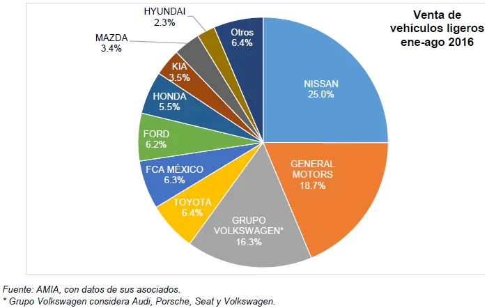 En el acumulado enero-agosto de 2016 se registraron 987 mil 663 vehículos ligeros vendidos, para un crecimiento de 18.5% en relación al acumulado del mismo periodo del año previo.
