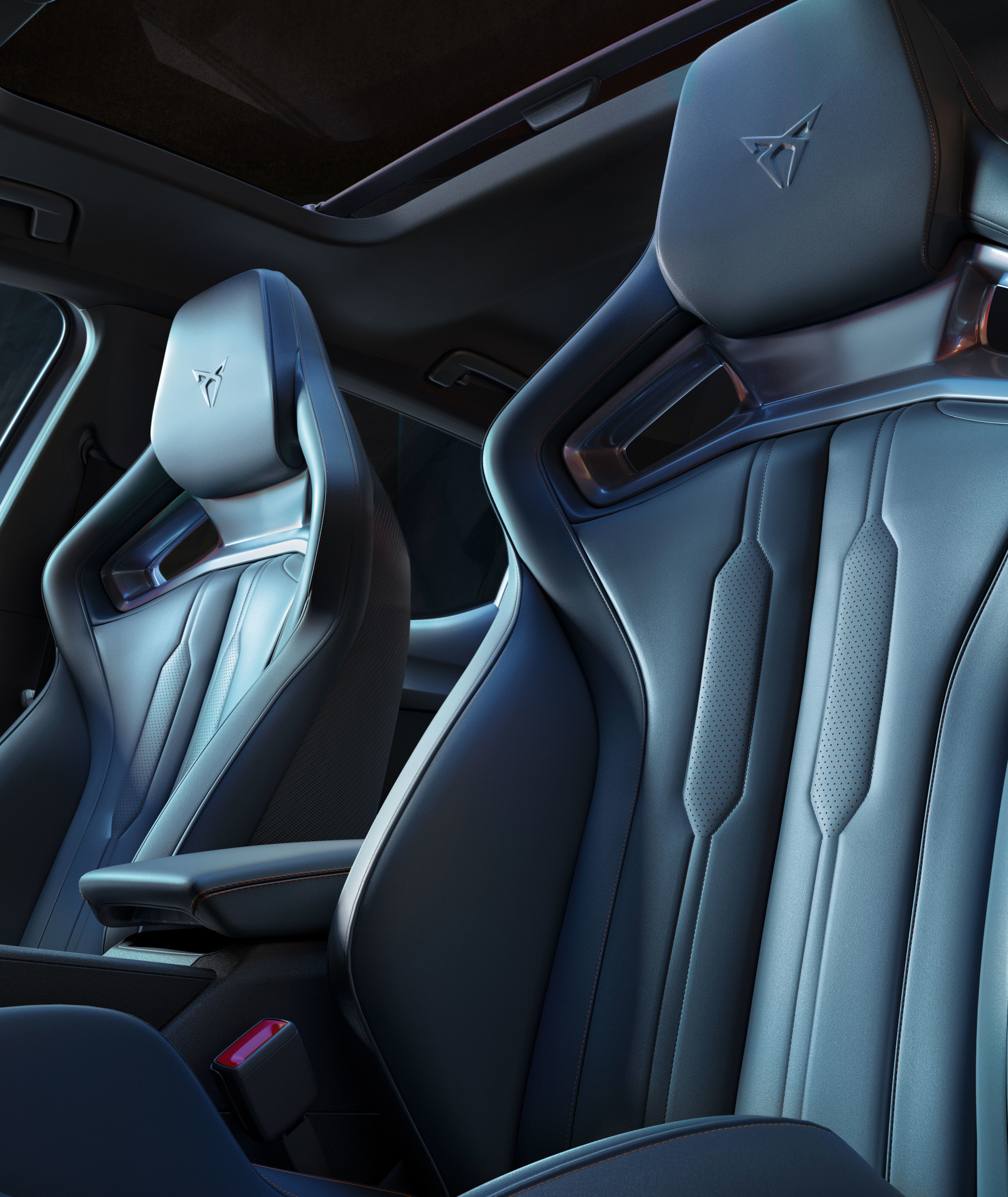 Los asientos CUPBucket se sitúan en una posición más baja para optimizar el centro de gravedad y generar una gran sensación de deportividad al conducirlo. Al diseño interior se suman costuras en color Copper a lo largo del tablero y en la tapicería en negro o azul petrol.