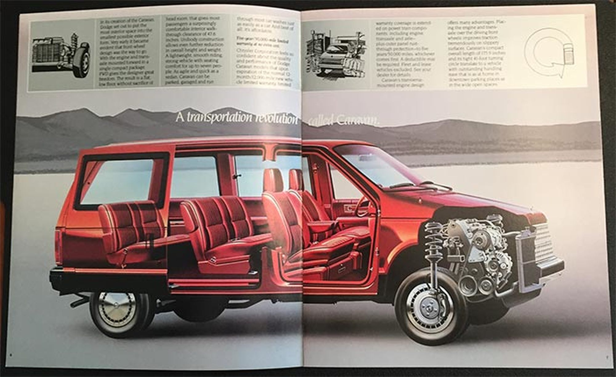 Los motores comenzaron en un 2.4 litros de 4 cilindros hasta un V6 que llegaba hasta los 3.8 litros. Con estos motores y aditamentos de seguridad, la Dodge Caravan junto con sus modelos gemelos fueron un éxito rotundo, recibiendo el premio North American Car of the Year y muchos más galardones del mundo motor.