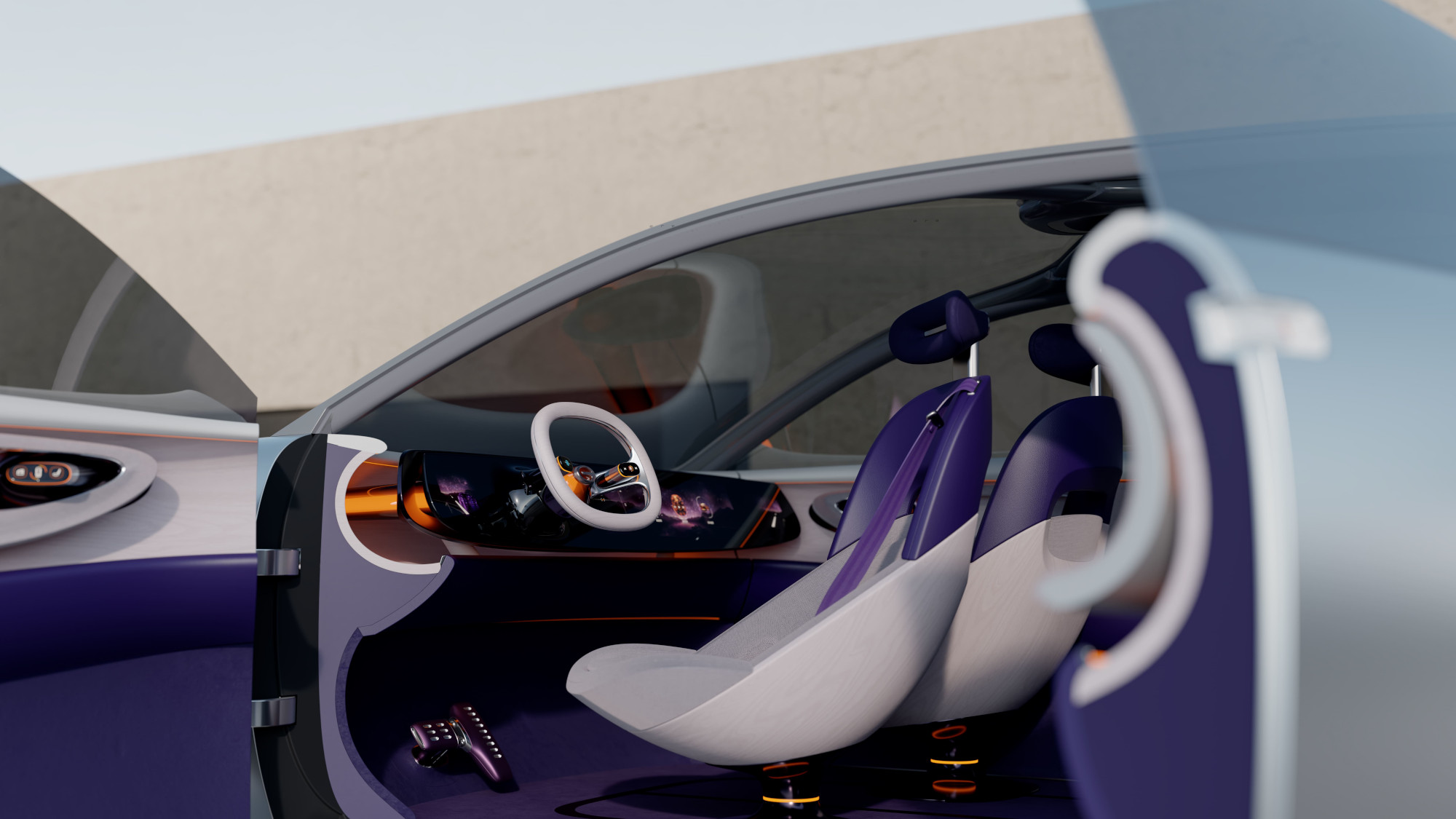 Al interior, la filosofía se centra en el ser humano. Con curvas elípticas y orgánicas, así como materiales de primera calidad, combinación de colores para brindar mayor confort. Atmósfera de lujo y envolvente a la que se suma el diseño de los asientos. Al viajar en grupo, los asientos delanteros pueden girar para orientarse hacia la parte trasera, creando un entorno interactivo.