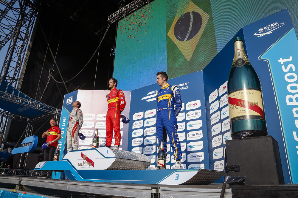 Faltaban cinco giros para la bandera a cuadros cuando los volantes del equipo Renault se lanzaron a un matar o morir por la victoria. Sin embargo, El brasileño Lucas Di Grassi defendió con todo su ventaja y aseguró la cima del podio, dejando la batalla entre Jerome Dámbrosio y Sébastien Buemi por el segundo lugar y, en un final de alarido, el primero logró conservar la posición a centímetros de ser superado por el piloto suizo.