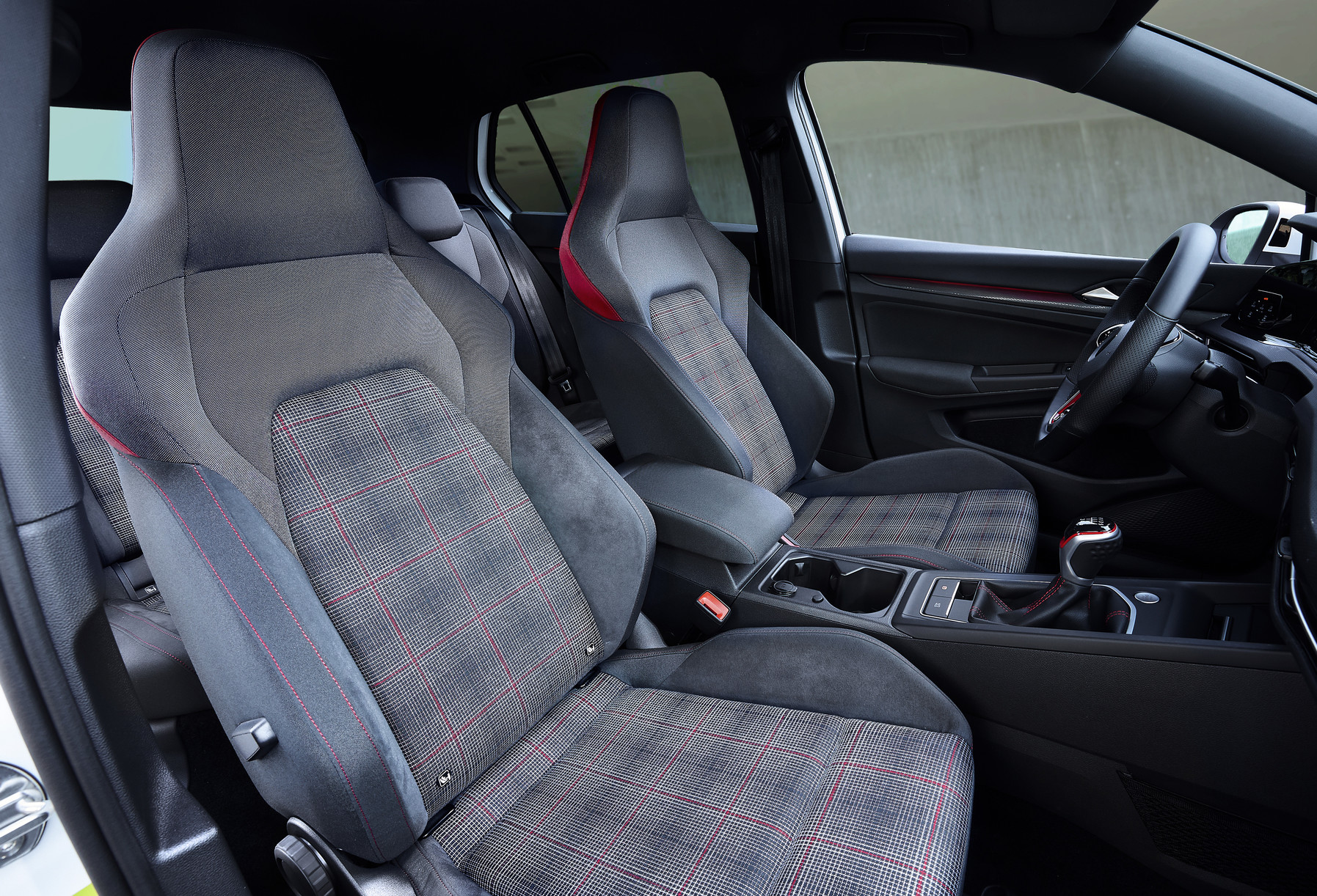 Golf GTI conserva detalles típicos en la nueva generación. Entre ellos el patrón de cuadros clásico con un nuevo aspecto fresco y ahora cubre los asientos deportivos.