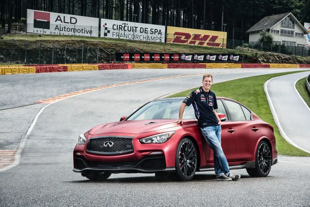 Vettel ha estado involucrado en el desarrollo del prototipo Q50 Eau Rouge, que fue revelado por primera vez como un vehículo concepto de diseño en el Auto Show Internacional de Detroit en enero de este año. El prototipo fue mostrado posteriormente en el Auto Show de Beijing en abril.