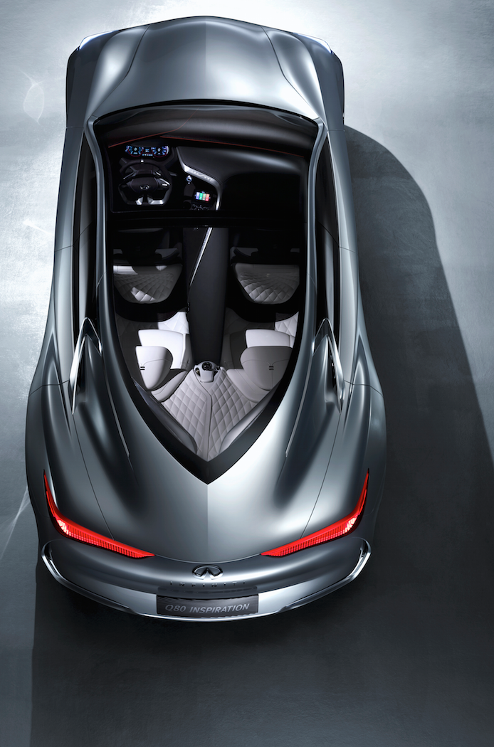 «Desde una perspectiva de diseño, Q80 Inspiration es la epítome de la provocación, un vehículo que rompe el molde del tradicional sedán premium en la forma de su cabina y sus dimensiones «, comentó Alfonso Albaisa, director ejecutivo de diseño de Infiniti. «Ofrece al mismo tiempo elegancia femenina y amenaza musculosa e impresiona en términos de estilo, arte, elección de los materiales y la atención al detalle».