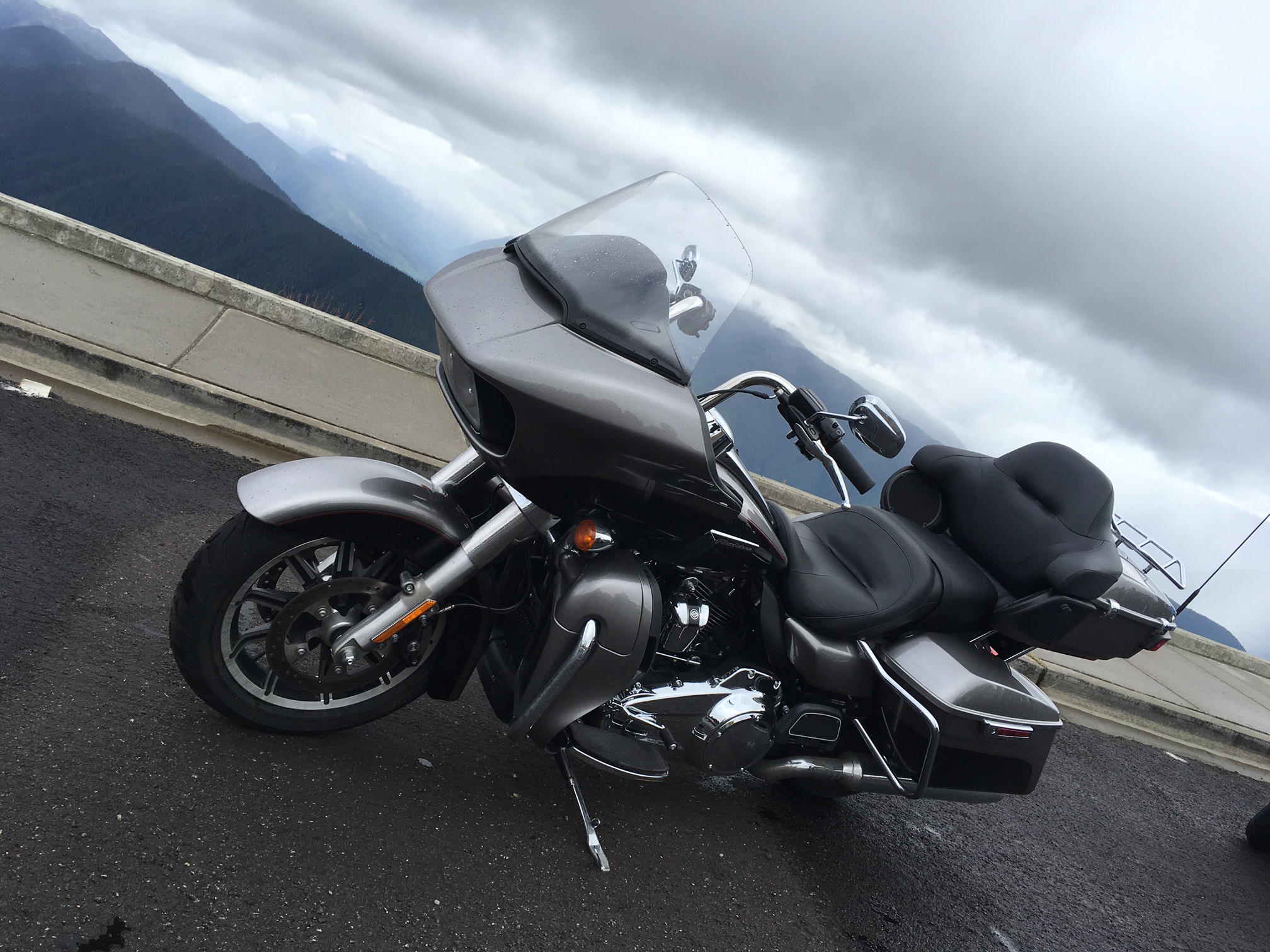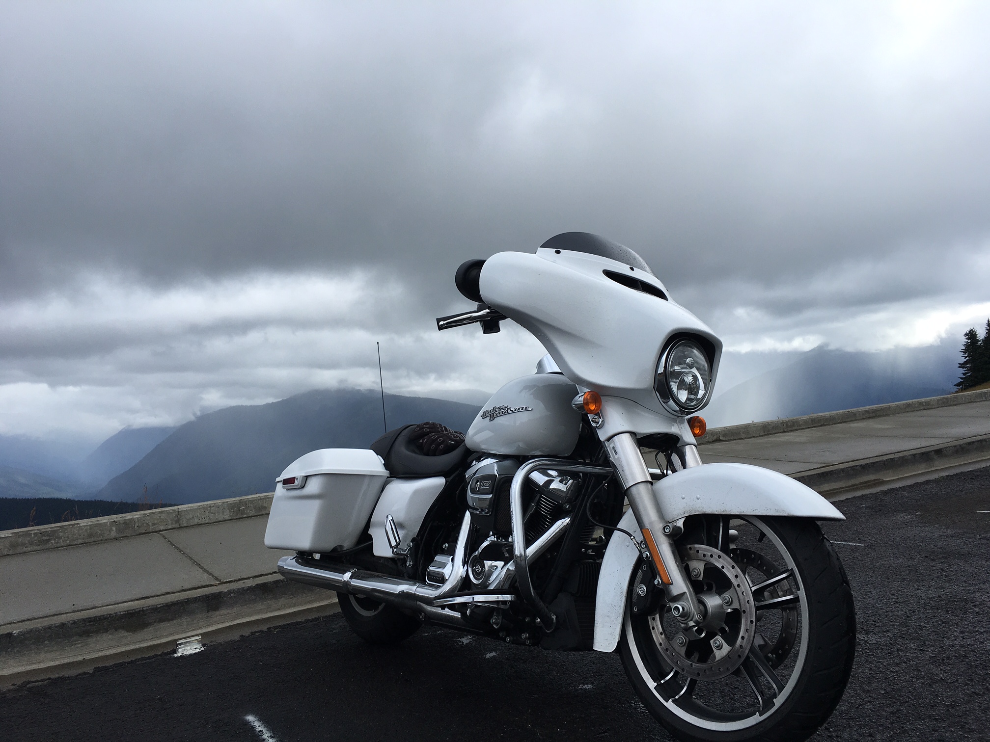 El día de hoy inicio nuestra experiencia a través de tres parques nacionales en Estados Unidos, y por supuesto arriba de una Harley-Davidson 2017 con el nuevo motor Milwaukee Eight – con 8 de 8 válvulas, 4 por cilindro -, el nuevo motor es apenas el noveno en la historia de los VTwin de la marca, y ya tiene su lugar asegurado en el museo Harley-Davidson en Milwaukee, suena, vibra, se maneja, se siente y hasta huele como un motor de la marca, a lo que usualmente estamos acostumbrados los que rodamos en ellas, pero ahora es mucho mejor por varias razones que hoy en trazados de montaña, lluvia, neblina, frio y carreteras estrechas de una gran cordillera que se congela en el inverno, aquí en esta locación, el torque quedó claro, el nuevo motor mejor enfriado, con mejor eficiencia de trabajo, da el poder para continuamente estar saliendo de curvas continuas no importa la relación en la caja, la verdad puede uno equivocarse entre la velocidad alta o baja, o la exacta para entrar a la curva y el motor lo saca a uno con un gran poder y sin congelarse por tener que empujar.