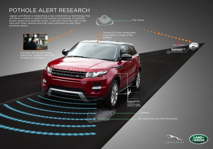 Las medidas son lógicas, si un vehículo adelante mira el hoyo, tope u obstáculo, podrá alertar a los vehículos que vienen detrás, logrando que los sistemas inteligentes de un Range Rover Evoque, por ejemplo, pueda ajustar la suspensión para amortiguar el impacto y reducir o eliminar daños a llantas, rines y vehículos. Asimismo, el Evoque ha sido seleccionado como auto experimental, mientras que Coventry, Inglaterra, es la ciudad escogida para llevar a cabo el sofware experimental y afinarlo precio a su lanzamiento. Éste incorporará cámaras con video y estéreo digital a fin de ubicar baches, alcantarillas y más, mientras que en el futuro se planea que los sistemas sean tan avanzados que evadan peligros en el camino sin salirse del carril o invadir a un segundo conductor, pero también desacelerar según el obstáculo e incluso frenar por completo para evitar una situación de peligro.