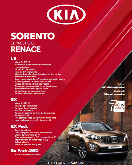 “KIA llegó tarde a la fiesta, pero ser últimos tiene ciertas ventajas”, así comenzó la presentación de Horacio Chávez, Director General de KIA Motors México, y es que con un slogan tan comprometido como “The Power to Surprise”, la surcoreana está lista para superar las expectativas. KIA significa: “KI” = surgir o emerger + “A”, referente a Asia y, a pesar del orgullo por su país y sus raíces, la marca se sitúa a nivel mundial de manera dinámica, fuerte y con un ritmo que asusta a más de un competidor. KIA cuenta con un sistema de expansión que controla a sus proveedores y servicios, es decir, no utiliza a terceros para desarrollar o brindar sustentabilidad de productos, hablamos de una compañía vertical, lo que le brinda herramientas para responder de manera directa al cliente, y así será en nuestro país.