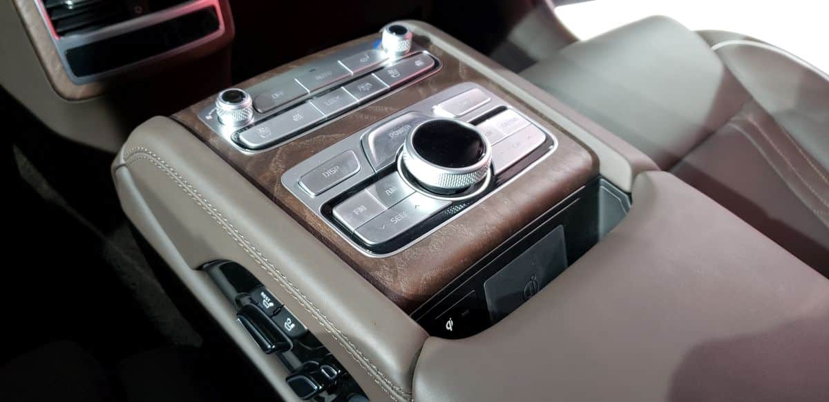 Destaca mucho la pantalla central en el tablero como una de las más grandes en el mercado con 12.3 pulgadas. Desde luego, desde esta se controla todo, pero también desde el controlador de asientos traseros. Como buen auto insignia super lujoso, está pensado para quien viaja en el asiento trasero con chofer, así que del asiento trasero emerge una pequeña consola con todos los controles necesarios para cumplir sus deseos.