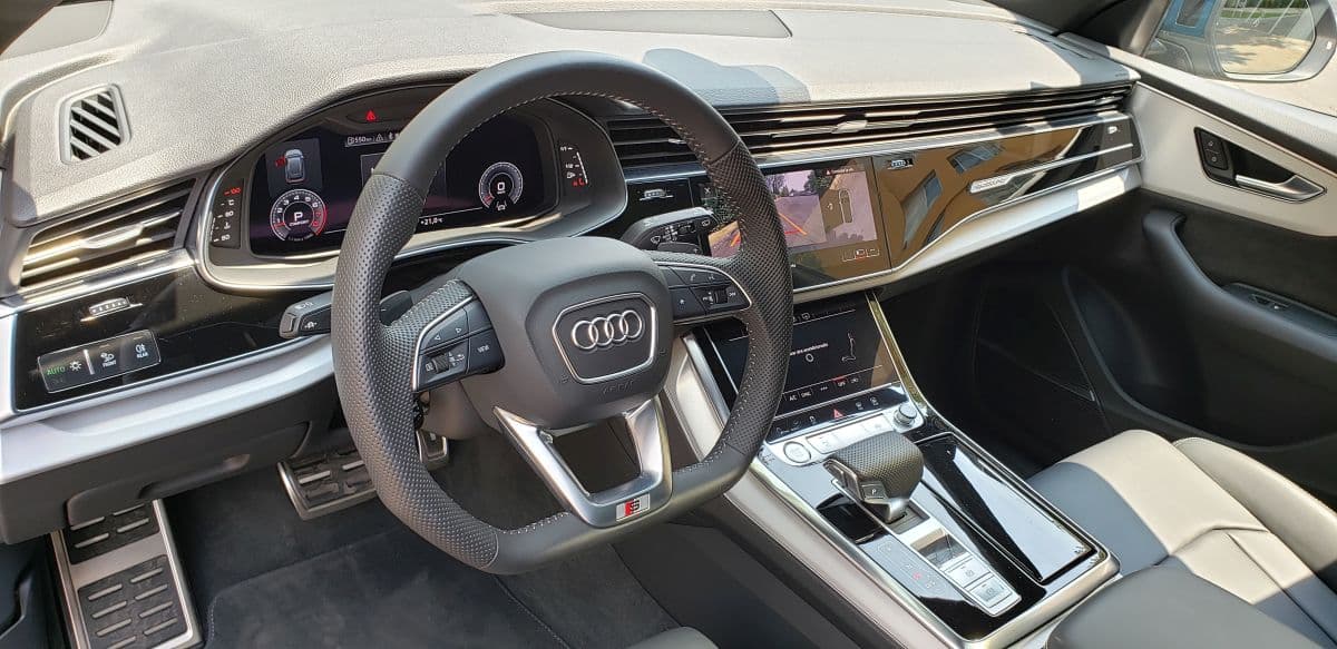 La versión probada S Line cuenta con asientos deportivos forrados en piel Valcona, volante recortado, pedales y estriberas de aluminio, así como múltiples emblemas que hacen que se note que se trate de la versión S Line. Es necesario apuntar que Audi Q8 cuenta con personalización disponible al gusto del cliente, teniendo al alcance cosas como: head up display, paquete de asistencia en ciudad, cámara de visión nocturna, cámara de 360 grados y hasta el eje trasero direccional, entre los más destacados, naturalmente con costo extra.