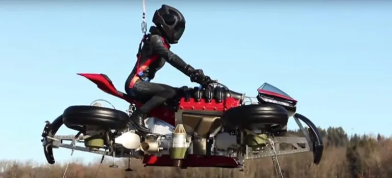 Para la motocicleta voladora, la firma utilizó como base otro de sus desarrollos, la Lazareth LM847, pero en lugar de utilizar el motor V8 Maserati, se sustituyó por uno eléctrico.