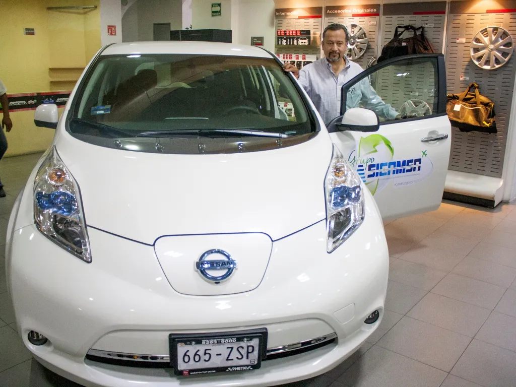 El Capitán Erick Delgado, director general de la empresa SICAMSA, recibió las llaves de las tres unidades de LEAF en las instalaciones de Nissan Meta en Nuevo Polanco. Alejandro Viveros, gerente de la Unidad Cero Emisiones de Nissan y Jorge Tame, director general de Nissan Meta hicieron entrega de los documentos que convierten a SICAMSA en la primera empresa en México que integra a Nissan LEAF en su flotilla.