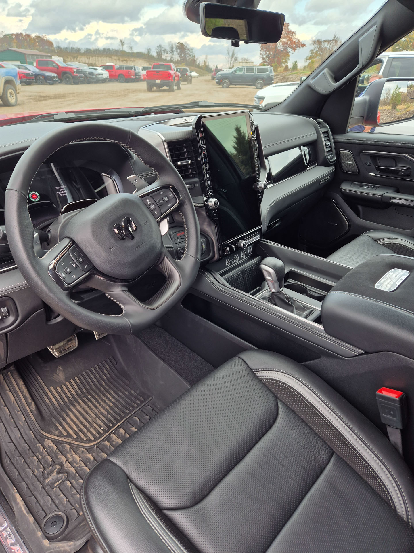 Al interior, conserva esa cabina súper equipada que encontramos en otras pick-up de RAM 1500. Tiene una pantalla central de 14.5 pulgadas en donde se muestran diversas mediciones deportivas y para off- road, como: aceleraciones g, ángulo de entrada, tiempo de cuarto de milla, etcétera.