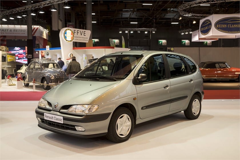 – Ejemplos de Renault monovolúmenes: el Espace de 1984, el Twingo de 1992 y el Scénic de 1996.