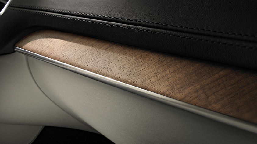 Después de que se ha seleccionado, la madera se corta en capas delgadas llamadas chapas que se tiñen y tratan – un proceso muy práctico. No es algo que una máquina puede hacer, como Anders Bergstrom, director de diseño de interiores explica. “La madera se moldea y se lija a mano para después ser teñida. Me imagino que mucha gente sólo piensa que estos coches son únicamente técnicos. Por supuesto que sí. Pero en muchas cosas como los materiales, los cueros y las maderas son hechos a mano. Los adornos han sido adaptados al tablero, con un diseño de espina de pescado – algo que Bergstrom llama corte de libro. “Hay una gran distribución de madera en el centro del auto. Se da un buen sentido de artesanía”.