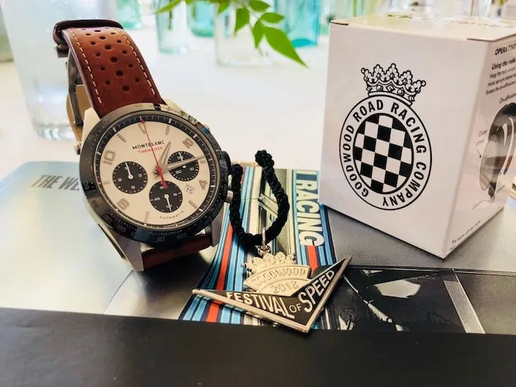 Montblanc y Goodwood, si lo pensamos un poco más Montblanc es una compañía de más de 100 años, y Goodwood una finca también de siglos, la casa Montblanc encuentra una relativa reciente historia con la alta relojería al comprar Minerva, una casa que se especializaba en hacer todos su mecanismo cronógrafo y que también tenía un espíritu “Racing”, por el otro lado, Goodwood cuenta hoy con solo 25 años de hacerse, y digo solo pues hay autoshows que ya llegan a 100 años de existir como el de París o Nueva York, pero larga historia en deportes como cacería y caballos, basados en resistencia, precisión y velocidad. Ambas casas van a conocedores y clientela que aprecia el vivir con bienes únicos y en busca de calidad. Aunado a eso, pongamos que la competencia no puede existir sin el tiempo y el tiempo sin ser medido exactamente para dar ganadores, retos y estadística, parte del mito que maneja Goodwood con el motor. Montblanc no pudo encontrar mejor casa que esta para enseñar sus productos y el vínculo con el entusiasmo por los autos, y Goodwood un mejor patrocinador que le da un alcance mundial en su comunicación como cronometrador oficial. Una pareja perfecta.