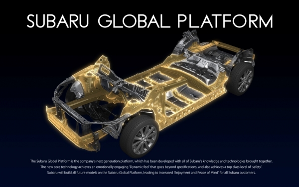 La Plataforma Global Subaru es parte de las seis iniciativas para mejorar la marca Subaru y se describe en la visión de gestión a mediano plazo de la compañía con el lema: «la prominencia 2020″, anunciado por la propia firma en 2014. Junto con los motores horizontalmente opuestos, el excelente Symmetrical All-Wheel Drive (AWD) y la vista que representan las tecnologías básicas Subaru, la nueva plataforma constituirá el fundamento básico de la próxima generación de vehículos de la compañía japonesa.