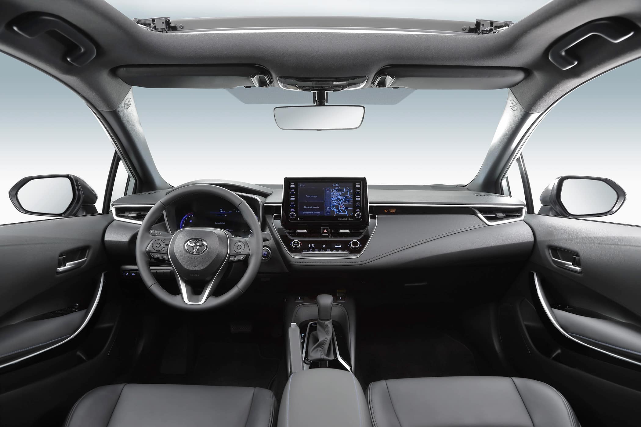 El sistema de audio destaca por su alta fidelidad con 6 bocinas, 1 USB, Mini-Jack y pantalla touch de 7” (versión Base MT y LE) y una de 8” (versión SE y Hybrid), además de Apple CarPlay en todas sus versiones. Cuenta con volante ergonómico con múltiples controles de altura y profundidad, aire acondicionado automático (versiones SE y Hybrid), espejo retrovisor electrocromático que brinda confort en el manejo nocturno (versión SE) y quemacocos deslizable con ajuste de inclinación y deflector de aire (versión SE).