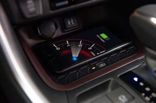 Al inferior de la consola central encontramos un cargador de celular por inducción pero con botón de encendido/apagado, detalle que resalta frente a la competencia, ya que no siempre querremos que en ese espacio, el celular se esté cargando.