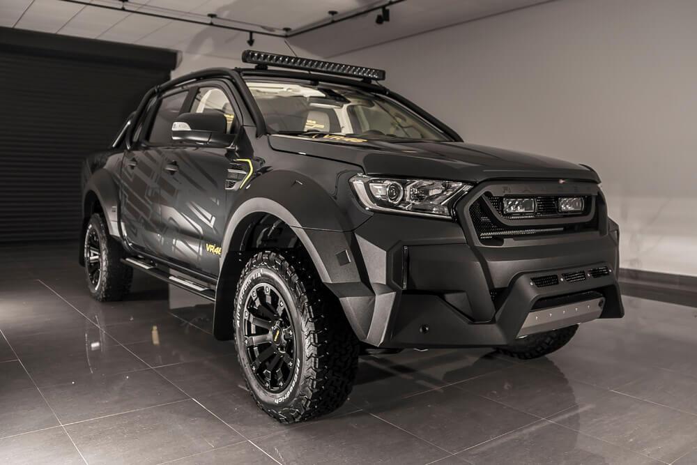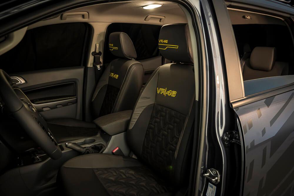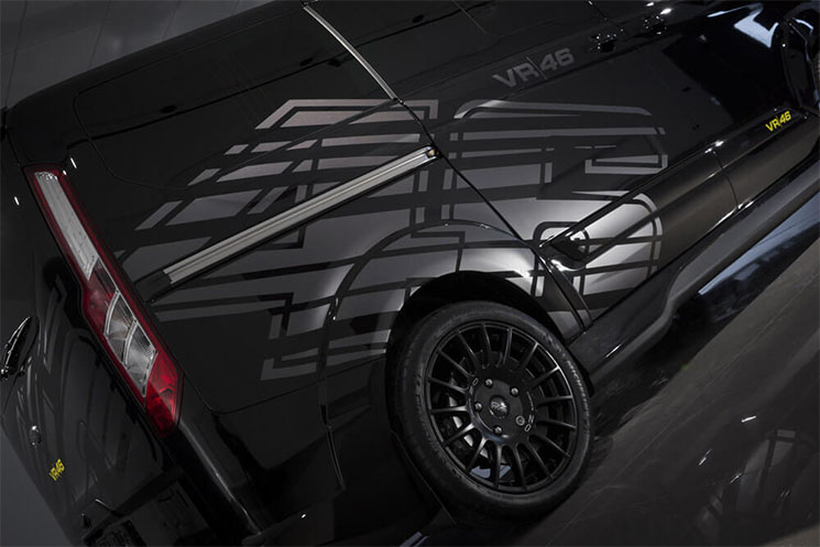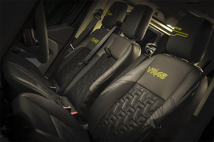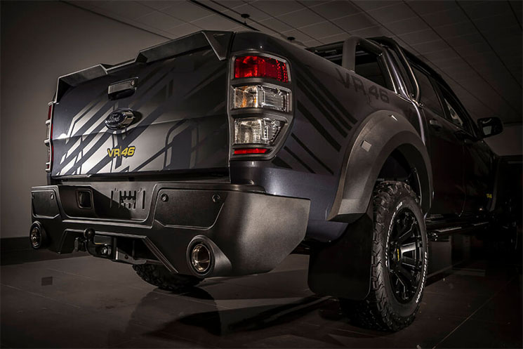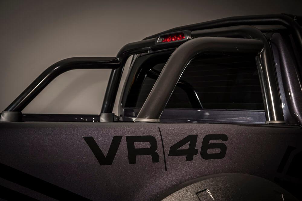 Por un lado tenemos a la espectacular VR46 Ranger, basada en la Ford Ranger Double Cab 3.2 TDCI de 200 hp con tracción integral 4×4. Esta imponente pick-up se ofrece en dos variantes de color, negro metálico o gris magnético, y llantas de 18″ de color negro, neumáticos BF Goodrich All Terrain, una doble salida de escape en acero y un kit de suspensión Pedders de 1.75 pulgadas.