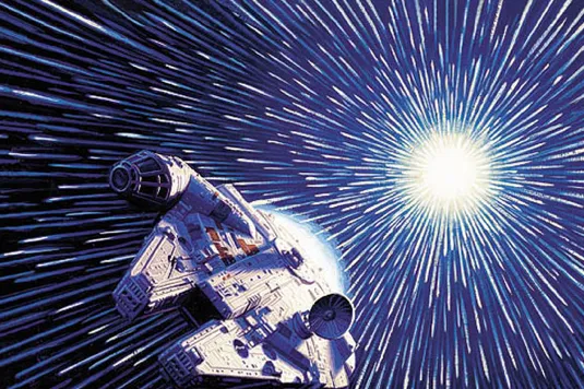 Si bien podríamos asociarla con la que generan las naves espaciales de Star Wars, su significado es un poco más complejo que esto. Por definición es una constante universal de valor 299.792.458 m/s (aproximadamente 186.282,397 millas/s)2 3 (suele aproximarse a 3·108 m/s), o lo que es lo mismo 9,46·1015 m/año; la segunda cifra es la usada para definir al intervalo llamado año luz.