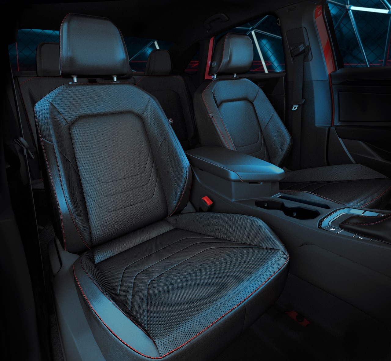 La cabina destaca por el novedoso Volkswagen Digital Cockpit configurable, volante deportivo de piel con paletas de cambio, asiento de conductor eléctrico con memorias, pedales deportivos en aluminio, pantalla táctil de 8” con sistema App Connect, sistema de sonido Beats Audio, luz ambiental personalizable en 10 colores, sistema Keyless Access con botón de arranque, asientos confort-sport de piel con etiquetas 35, tapetes con costuras rojas y emblema 35 bordado, estribos iluminados en rojo con logo 35.