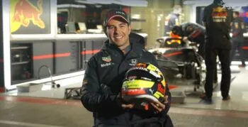 Checo Pérez presenta su primer casco Red Bull