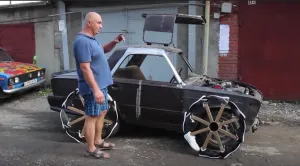 Un hombre cambió las llantas de su auto por ruedas hechas de tenis